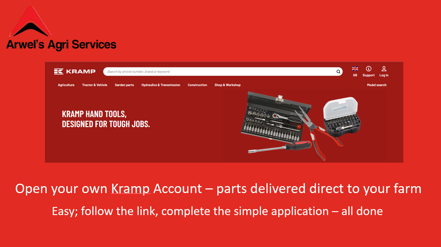 Kramp United Kingdom has provided a convenient quick link that directs customers straight to a registration page already pre-configured for our site. This makes it fast and easy for new customers to sign up and start accessing Kramp’s full range of products and services without needing to enter additional setup details.